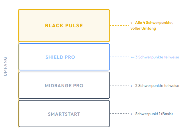 SmartStart, MidRange Pro und Shield Pro lösen konkrete Probleme: stabiler IT-Betrieb, bessere Security, grundlegende Automatisierung. Sie sind der richtige Einstieg, je nach Unternehmensgröße und Budget.